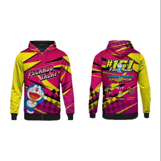 Jaket Doraemon Bahan Lotto Printing Sublimation Model Jaket