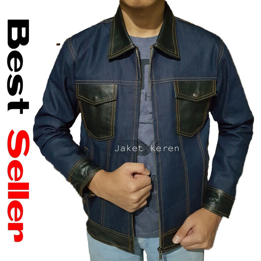 Jaket Pria Levis Jeans Kombinasi Kulit Asli Distro Jaket Motor
